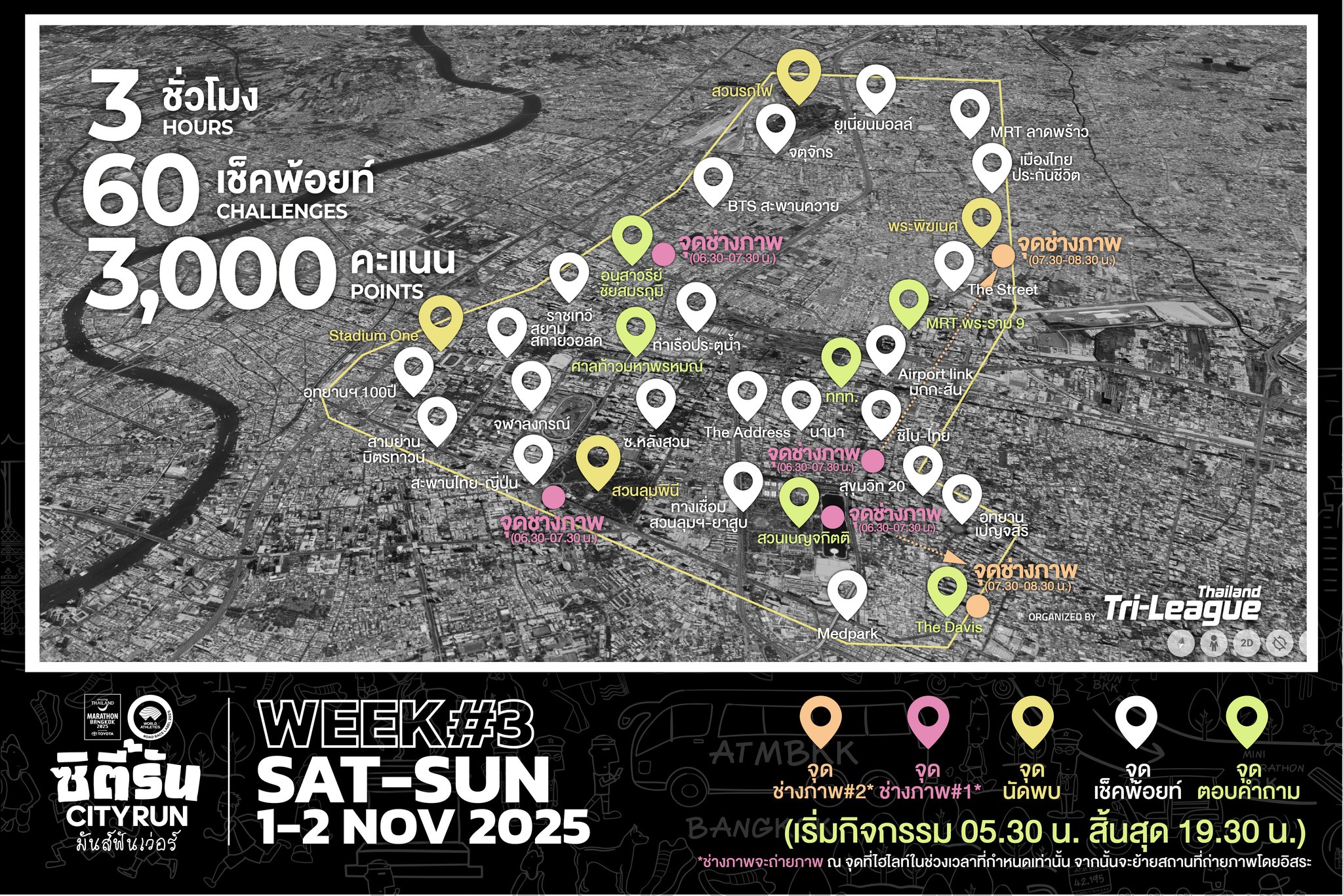 เส้นทางในสัปดาห์ที่ 3 กับเส้นทางตามแนวเส้นทางรถไฟฟ้า ที่ทุกคนเรียกร้อง เราได้เพิ่มจุด Check-Point เพิ่มอีก 10 จุด รวมเป็น 60 จุดในสัปดาห์นี้ เลือกเล่นตามเส้นทางที่หลากหลายได้อย่างหน่ำใจกันเลยทีเดียว